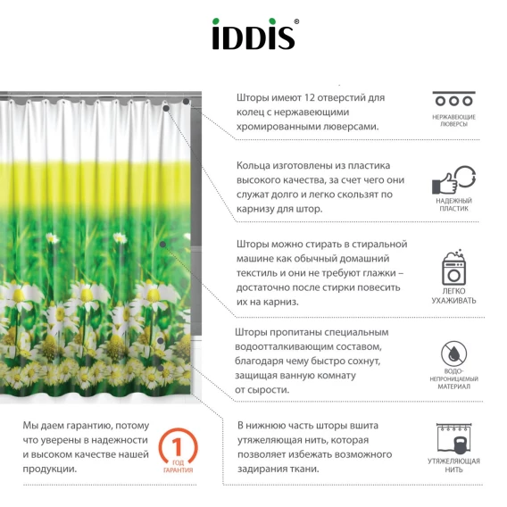 Штора для ванной комнаты IDDIS Basic SCID050P