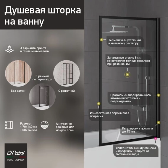 Шторка для ванны 70 см Paini Paini-ScreenWT70C прозрачное
