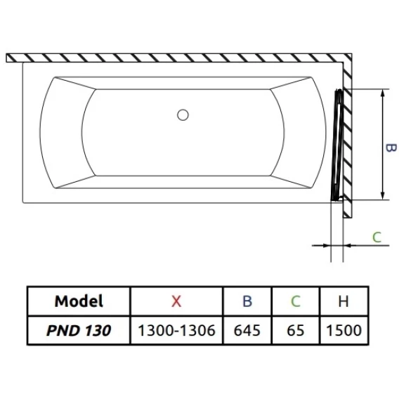 Шторка для ванны Radaway Arta PND 130 R 210213-01R прозрачное