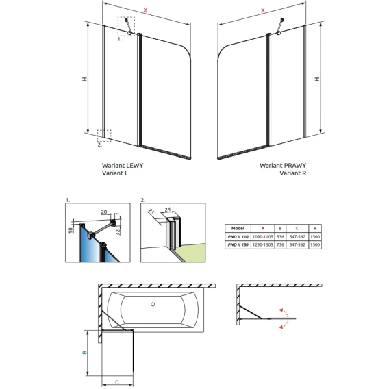 Шторка для ванны Radaway EOS PND II 130 Left 1206213-01L прозрачное