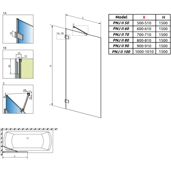Шторка для ванны Radaway Euphoria PNJ II 90 10007090-01-01 прозрачное