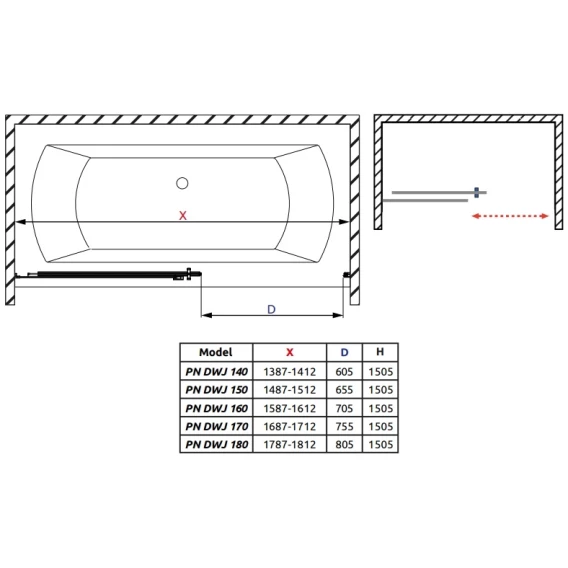 Шторка для ванны Radaway Idea Black PN DWJ 170 Left 10003170-54-01L прозрачное