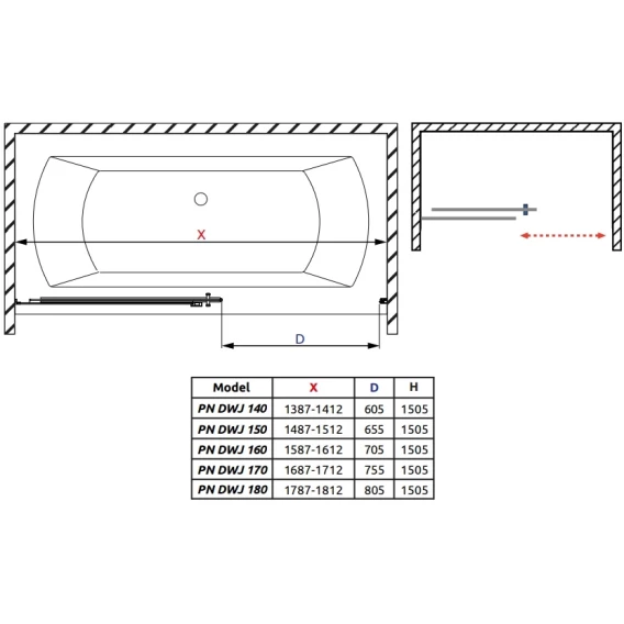 Шторка для ванны Radaway Idea PN DWJ 150 Left 10003150-01-01L прозрачное