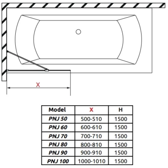 Шторка для ванны Radaway Modo New Black PNJ II Frame 60 10006060-54-56 прозрачное
