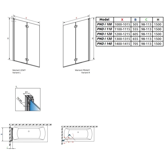 Шторка для ванны Radaway Nes 8 PND I 140 Right 10060140-01-01R прозрачное