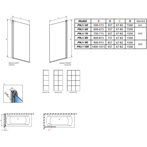 Шторка для ванны Radaway Nes Black PNJ I Factory 70 Left 10011070-54-55L прозрачное