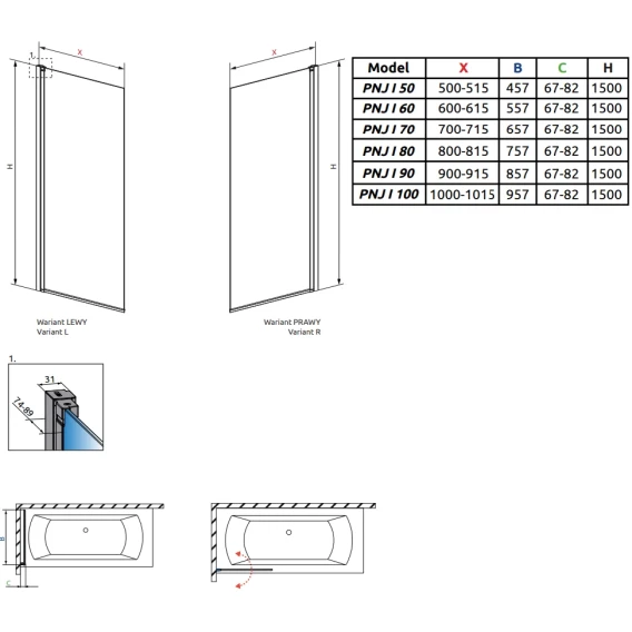 Шторка для ванны Radaway Nes Black PNJ I Frame 50 Right 10011050-54-56R прозрачное