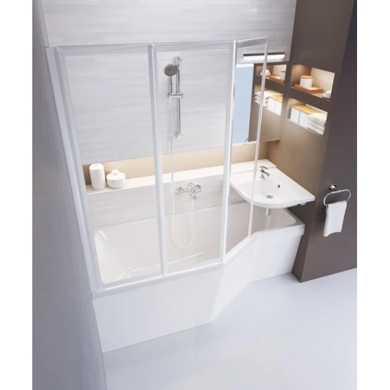 Штора состоит из трех подвижных частей, которые складываются вовнутрь ванны. Штора подходит для ванны BeHappy и других прямоугольных ванн с ровным передним бортом (Classic, Sonata, Vanda II и Lilia) или какой-либо классической прямоугольной ванны с ровным передним бортом. Стандартная высота шторы 1400 мм. Штора для ванны VS3 100 предназначена для ванны BeHappy 150. Штора для ванны VS3 100 в сложенном виде имеет ширину 340 мм. Повернув VS3 на 180°, получите Л/П варианты входа.