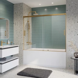 Шторка на ванну Cezares Tandem Soft TANDEM-SOFT-VF-2-180/145-C-BORO-IV 180 см, профиль золотой матовый, стекло прозрачное