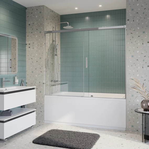 Шторка на ванну Cezares Tandem Soft TANDEM-SOFT-VF-2-180/145-C-Cr-IV 180 см, профиль хром, стекло прозрачное
