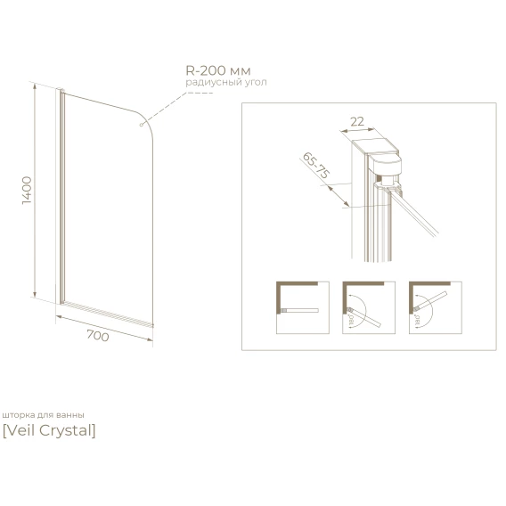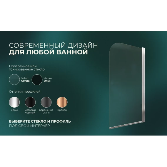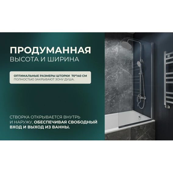 Шторка на ванну Knotlor Veil BS070CG0C 70 см, профиль хром, стекло прозрачное
