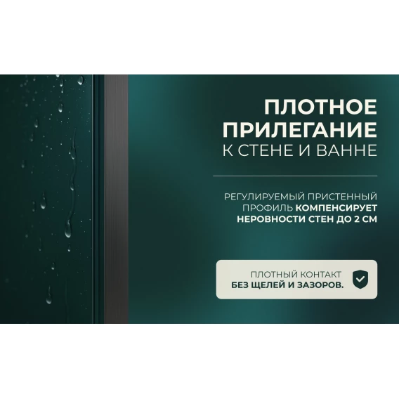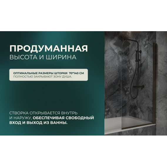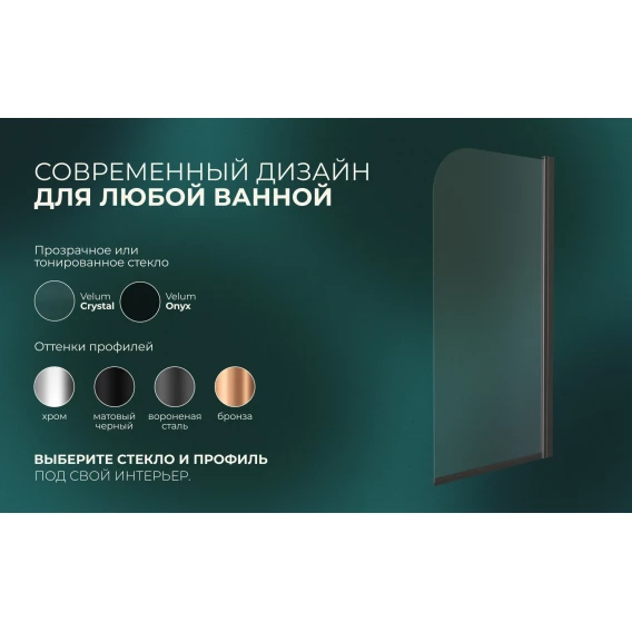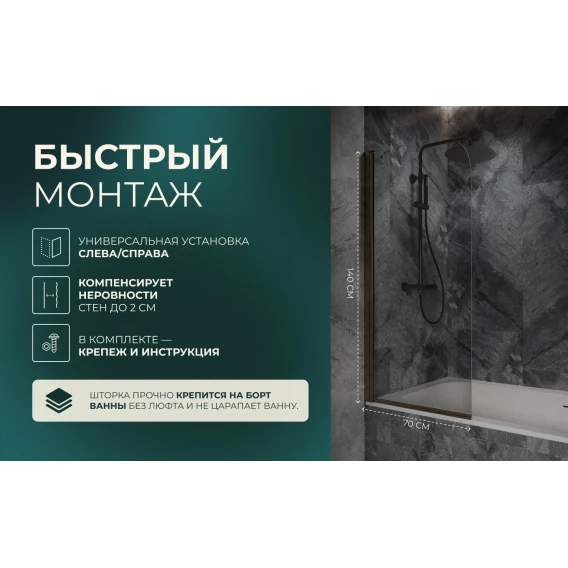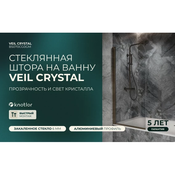 Шторка на ванну Knotlor Veil BS070CG0GM 70 см, профиль вороненая сталь, стекло прозрачное