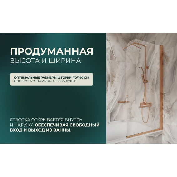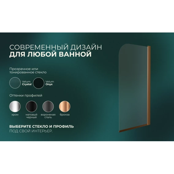 Шторка на ванну Knotlor Veil BS070CG0RB 70 см, профиль бронза матовая, стекло прозрачное