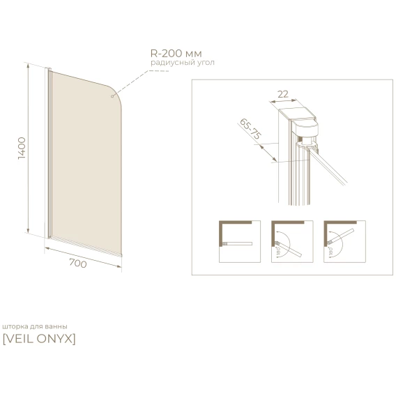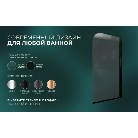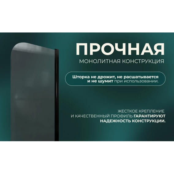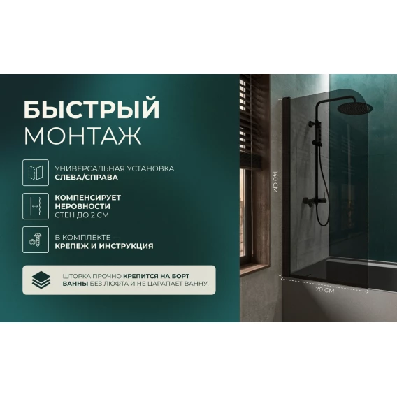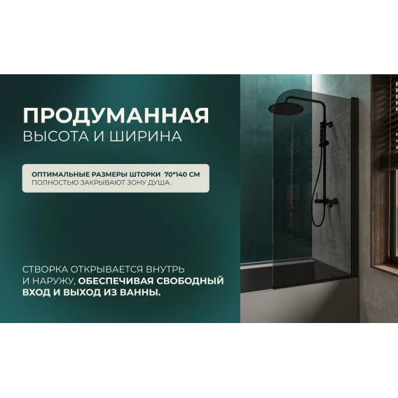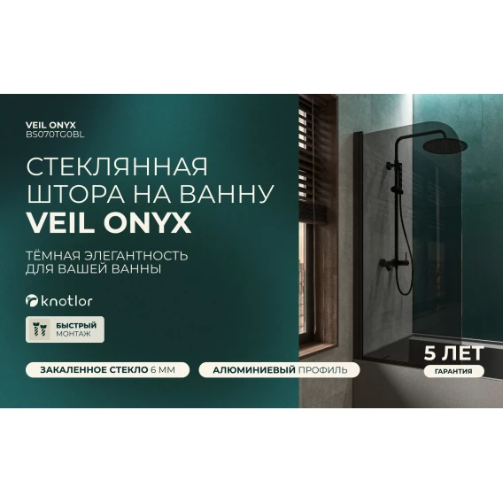 Шторка на ванну Knotlor Veil BS070TG0BL 70 см, профиль черный матовый, стекло тонированное