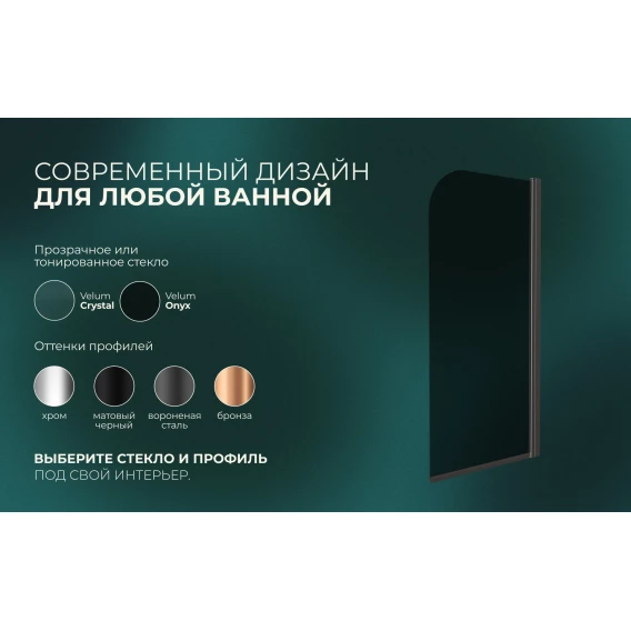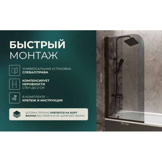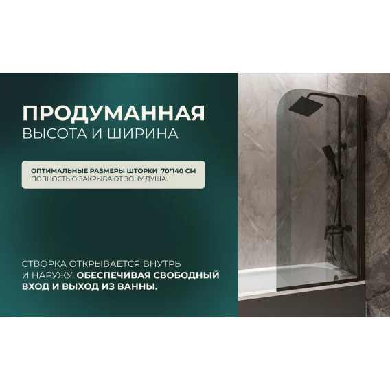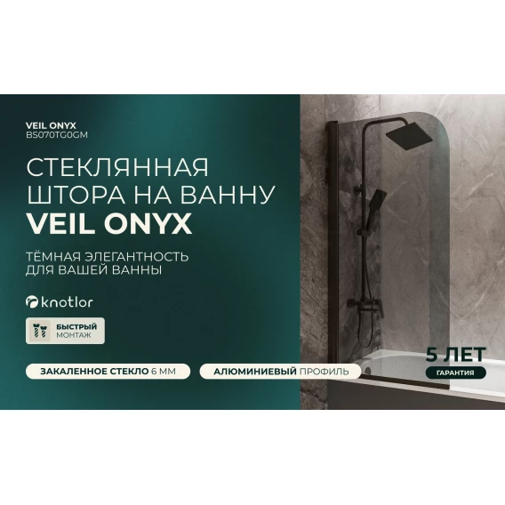 Шторка на ванну Knotlor Veil BS070TG0GM 70 см, профиль вороненая сталь, стекло тонированное