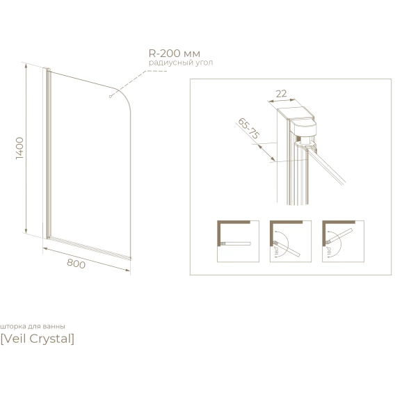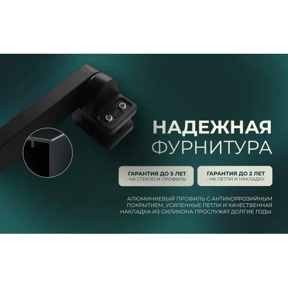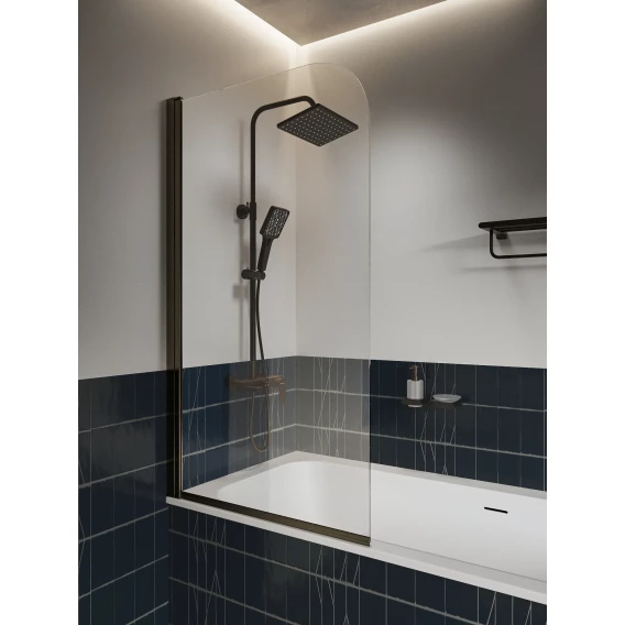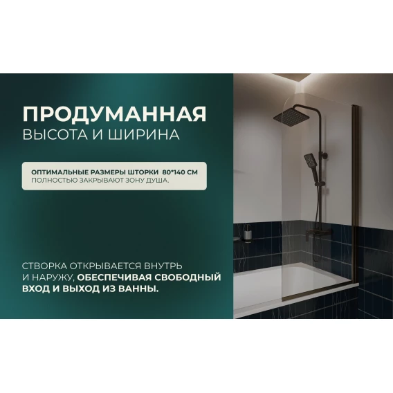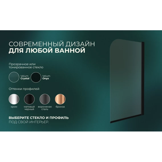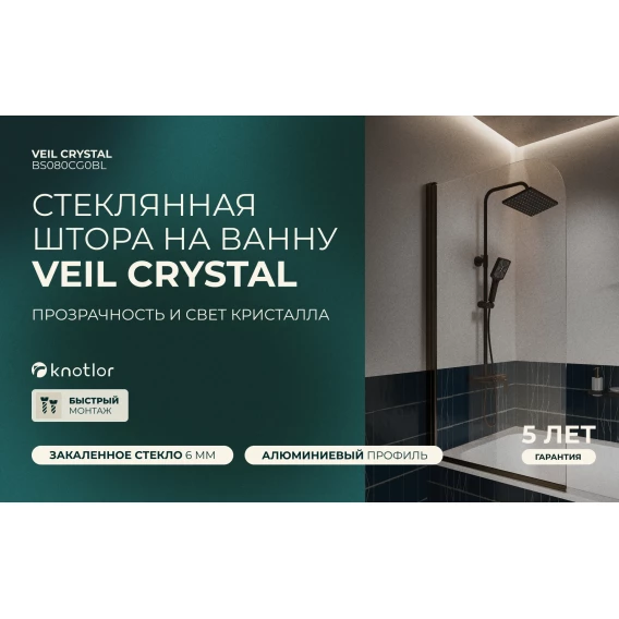Шторка на ванну Knotlor Veil BS080CG0BL 80 см, профиль черный матовый, стекло прозрачное