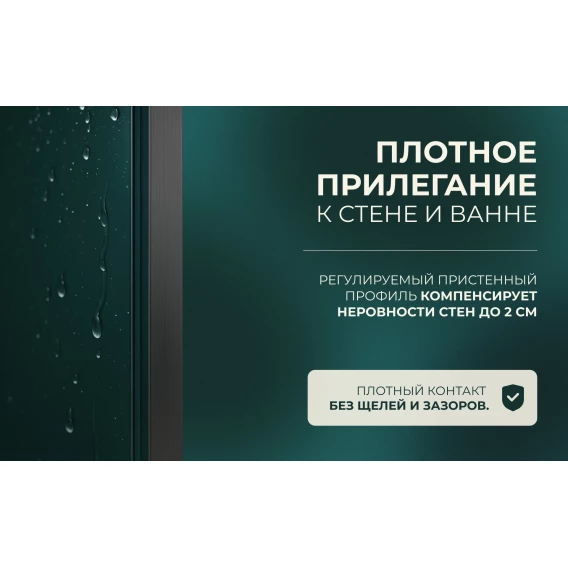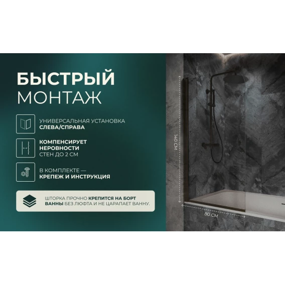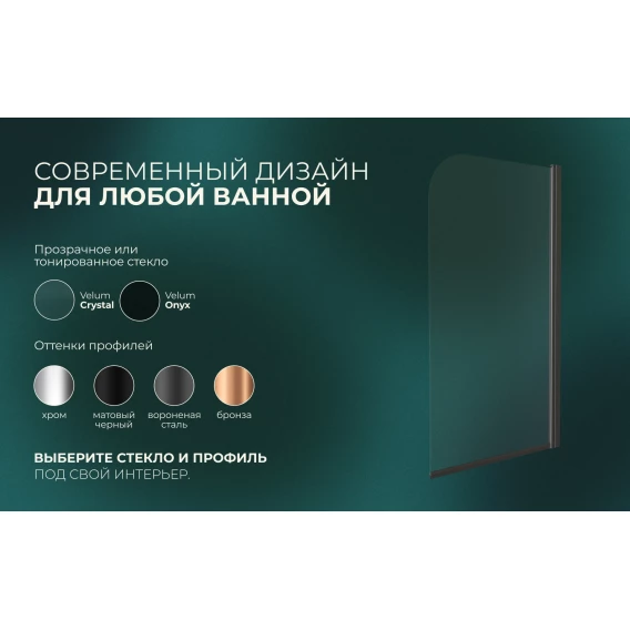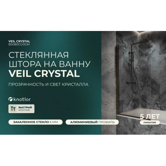 Шторка на ванну Knotlor Veil BS080CG0GM 80 см, профиль вороненая сталь, стекло прозрачное