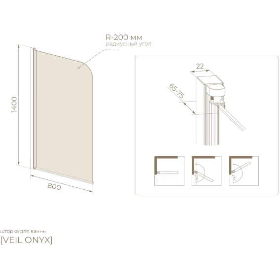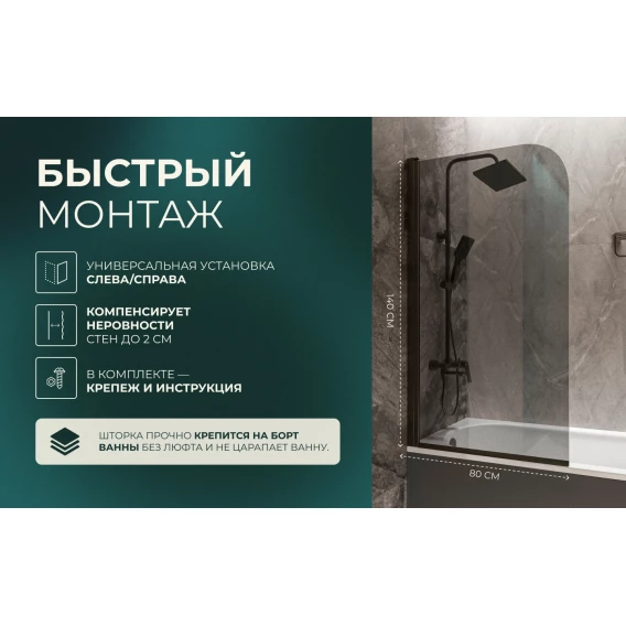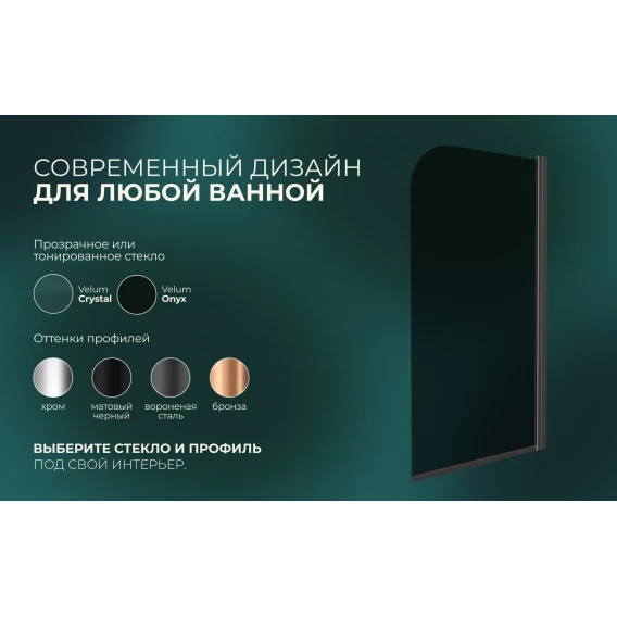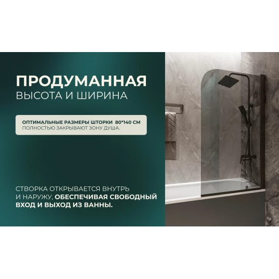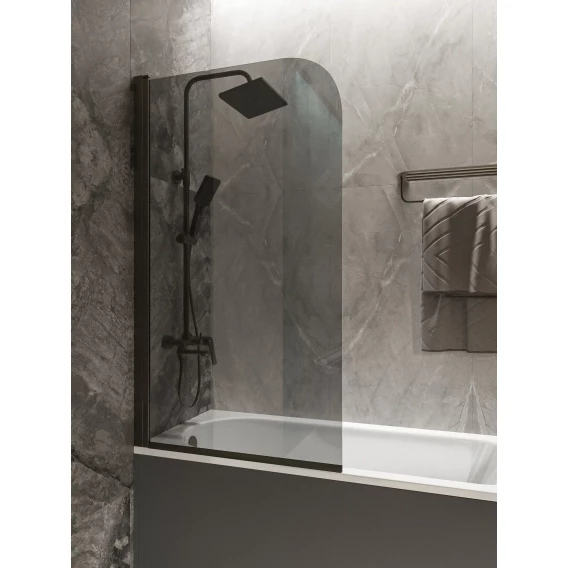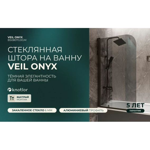 Шторка на ванну Knotlor Veil BS080TG0GM 80 см, профиль вороненая сталь, стекло тонированное