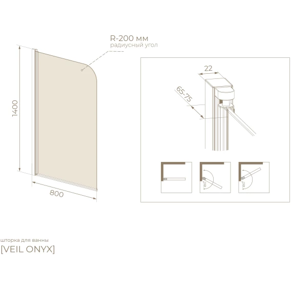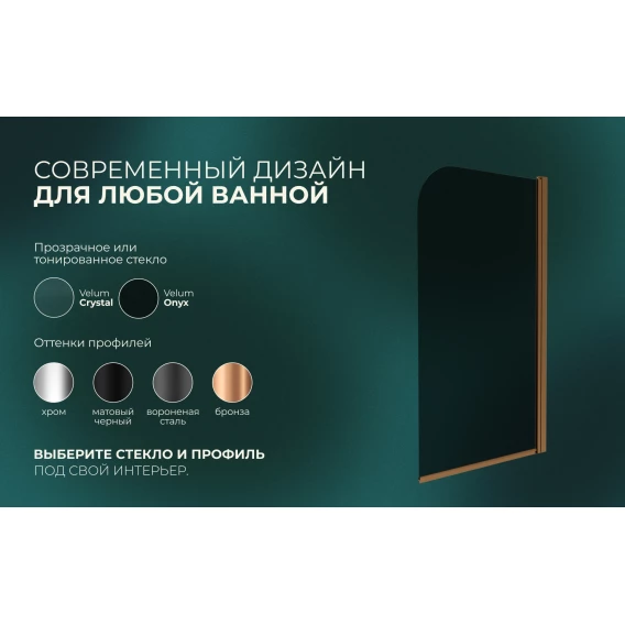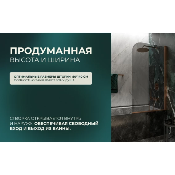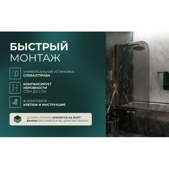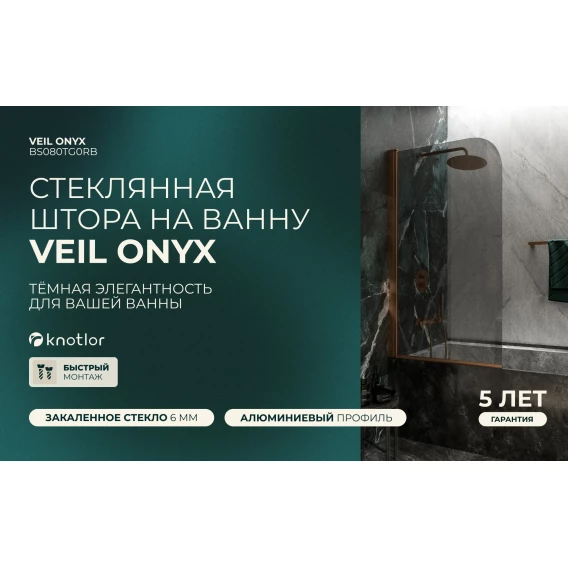 Шторка на ванну Knotlor Veil BS080TG0RB 80 см, профиль бронза матовая, стекло тонированное