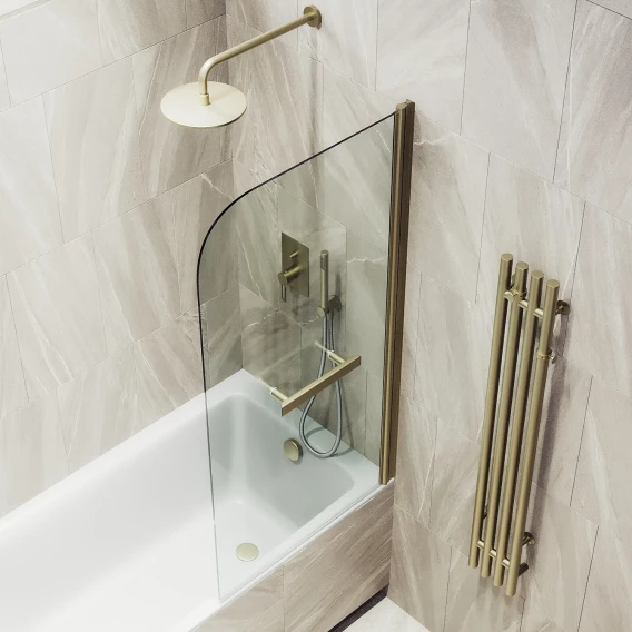 Шторка на ванну MaybahGlass MGV-782-2 70 см, профиль бронза матовая, стекло прозрачное
