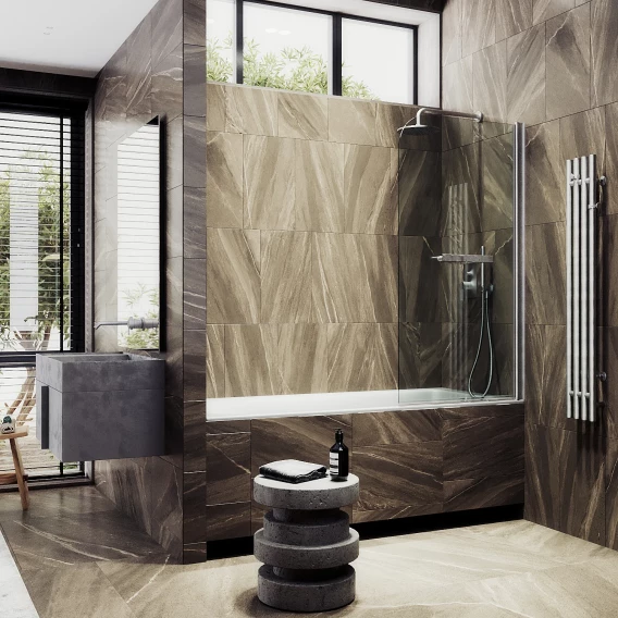 Шторка на ванну MaybahGlass MGV-782-5 70 см, профиль матовый хром, стекло прозрачное