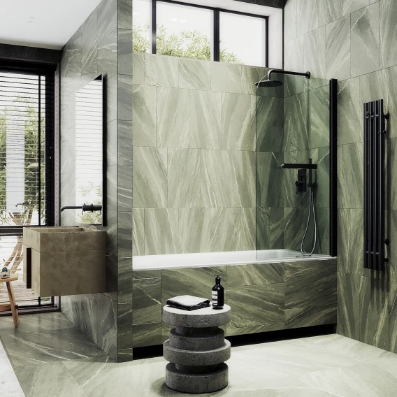 Шторка на ванну MaybahGlass MGV-782-6 70 см, профиль черный матовый, стекло прозрачное