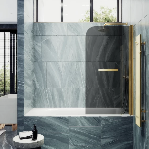 Шторка на ванну MaybahGlass MGV-785-3 70 см, профиль золотой матовый, стекло графитовое