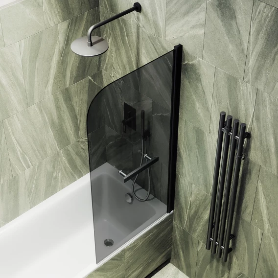 Шторка на ванну MaybahGlass MGV-785-6 70 см, профиль черный матовый, стекло графитовое