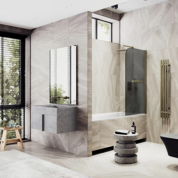 Шторка на ванну MaybahGlass MGV-786-2 70 см R, профиль бронза матовая, стекло графитовое матовое