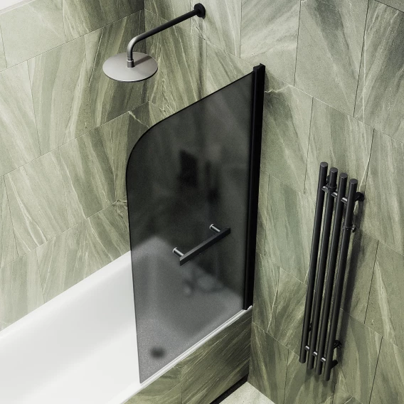 Шторка на ванну MaybahGlass MGV-786-6 70 см R, профиль черный матовый, стекло графитовое матовое