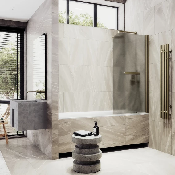 Шторка на ванну MaybahGlass MGV-790-2 80 см R, профиль бронза матовая, стекло бронза матовая