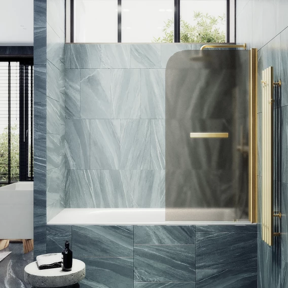 Шторка на ванну MaybahGlass MGV-790-3 80 см R, профиль золотой матовый, стекло бронза матовая