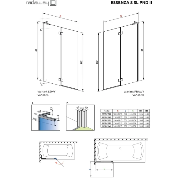 Шторка на ванну Radaway Essenza 8 SL Brushed Copper PND II 120 Left 10500120-93-01L 120 см L, профиль медь матовая, стекло прозрачное