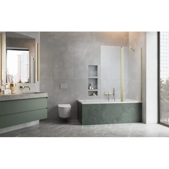 Шторка на ванну Radaway Nes Brushed Gold PND II 100 Right 10009100-99-01R 100 см R, профиль золотой матовый, стекло прозрачное