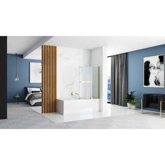 Шторка на ванну Rea Fabian REA-K6526 100 см, профиль золотой, стекло прозрачное