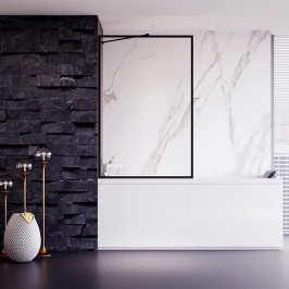 Шторка на ванну Veconi Palau PL85B-90-01-C8 90 см, профиль черный матовый, стекло прозрачное