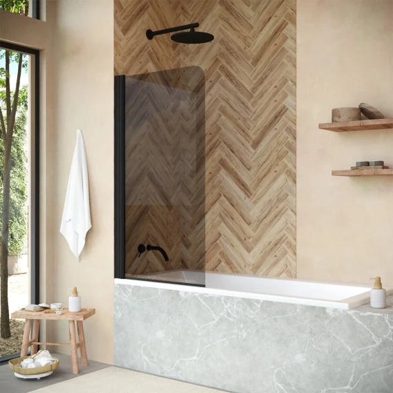 Шторка на ванну Vegas Glass Z2V Protec 170 02М 05 170 см, профиль черный матовый, стекло бронза