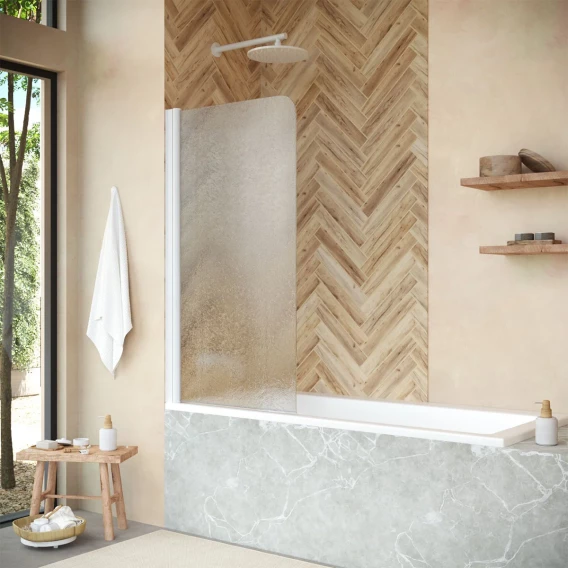 Шторка на ванну Vegas Glass EV LUX 60 02M Moru L 60 см L, профиль черный матовый, стекло рифленое