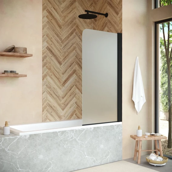 Шторка на ванну Vegas Glass EV NOVO 60 02M 10 R 61 см R, профиль черный матовый, стекло сатин