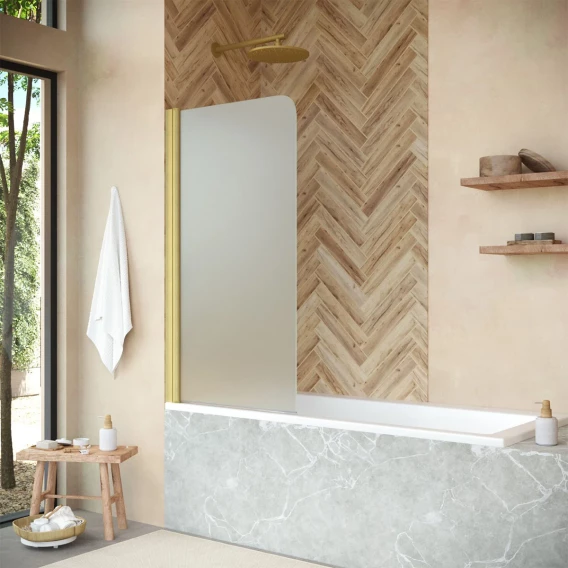 Шторка на ванну Vegas Glass EV NOVO 60 03 10 L 61 см L, профиль золотой матовый, стекло сатин