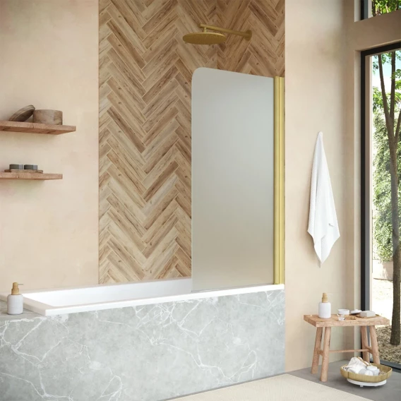 Шторка на ванну Vegas Glass EV NOVO 60 03 10 R 61 см R, профиль золотой матовый, стекло сатин