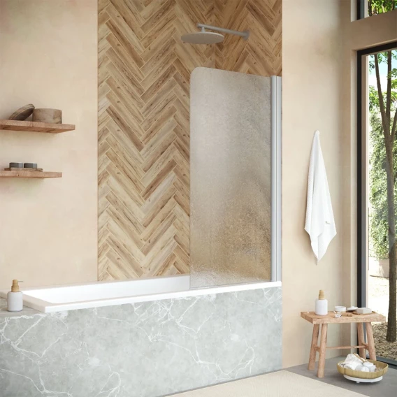 Шторка на ванну Vegas Glass Z2V Protec 160 02М Moru 160 см, профиль черный матовый, стекло рифленое
