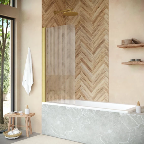 Шторка на ванну Vegas Glass EV NOVO 76 03 Moru L 76 см L, профиль золотой матовый, стекло рифленое