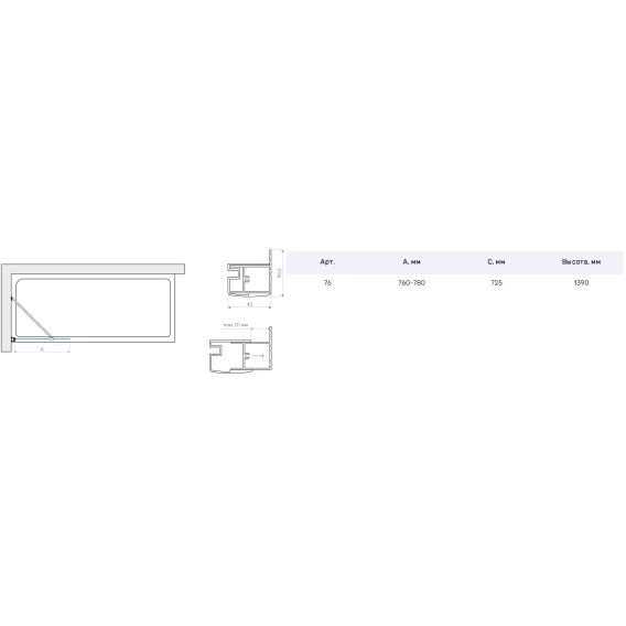 Шторка на ванну Vegas Glass EV ST NOVO 76 07 Moru L 76 см L, профиль матовый хром, стекло рифленое