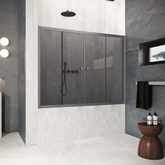 Шторка на ванну Vegas Glass ZV Protec 160 02M 07 160 см, профиль черный матовый, стекло графитовое