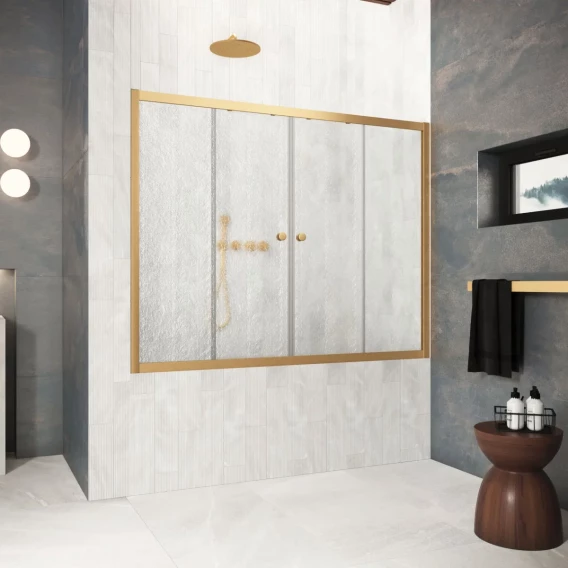 Шторка на ванну Vegas Glass Z2V Protec 180 03 02 180 см, профиль золотой матовый, стекло шиншилла
