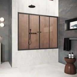 Шторка на ванну Vegas Glass Z2V Protec 190 02М 05 190 см, профиль черный матовый, стекло бронза