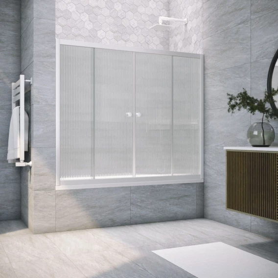 Шторка на ванну Vegas Glass Z2V Protec 200 01 Moru 200 см, профиль белый, стекло рифленое