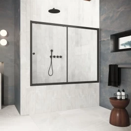 Шторка на ванну Vegas Glass ZV Protec 160 02M 01 160 см, профиль черный матовый, стекло прозрачное