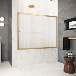 Шторка на ванну Vegas Glass ZV Protec 150 03 Moru 150 см, профиль золотой матовый, стекло рифленое